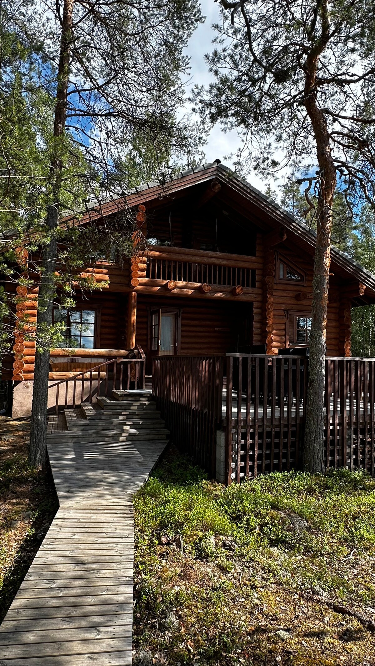 Relaxació i pau enmig de la natura en una vil·la nova d'alta classe. Villa Vintturi és una vil·la de troncs al costat del llac Päijänne a Sysmä, Finlàndia. La vil·la es va acabar de construir el juny del 2022 amb materials i decoracions d'alta qualitat. La vil·la té totes les comoditats que es poden necessitar, des d'aigua corrent, aire condicionat i una cuina d'alta qualitat amb armaris de vi fins a un jacuzzi climatitzat i una sauna de fusta amb unes vistes impressionants al llac. El lloguer inclou una barca de rem.