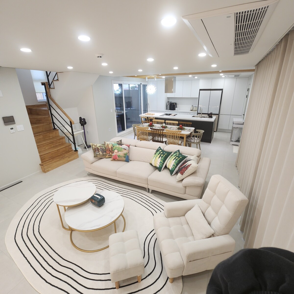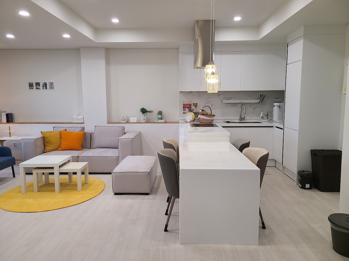 Situat en un complex de cases tranquil·les a prop de Heyri, Paju Aquest és un allotjament privat de 133 m2 i dos pisos. Ens hem ocupat de tots els espais perquè la teva estada sigui relaxant i còmoda, La vista de la sala d'estar oberta i la taula de l'illa són espais impressionants. Pots veure la televisió, Netflix i OTT a la pantalla gran del projector de feix. Al pati exterior exclusiu, pots gaudir d'una llar de foc i d'una barbacoa en privat, També pots fer servir la minipiscina de la coberta, feta de fusta natural, i el jardí amb gespa, amb caquers i magnòlies. Treballem amb la gestió de la neteja com a prioritat màxima, Aquest allotjament és perfecte per a una escapada especial amb la família, els amics i la teva parella. Número 🙏🏻 de contacte de l'amfitrió (010_7129_1787)