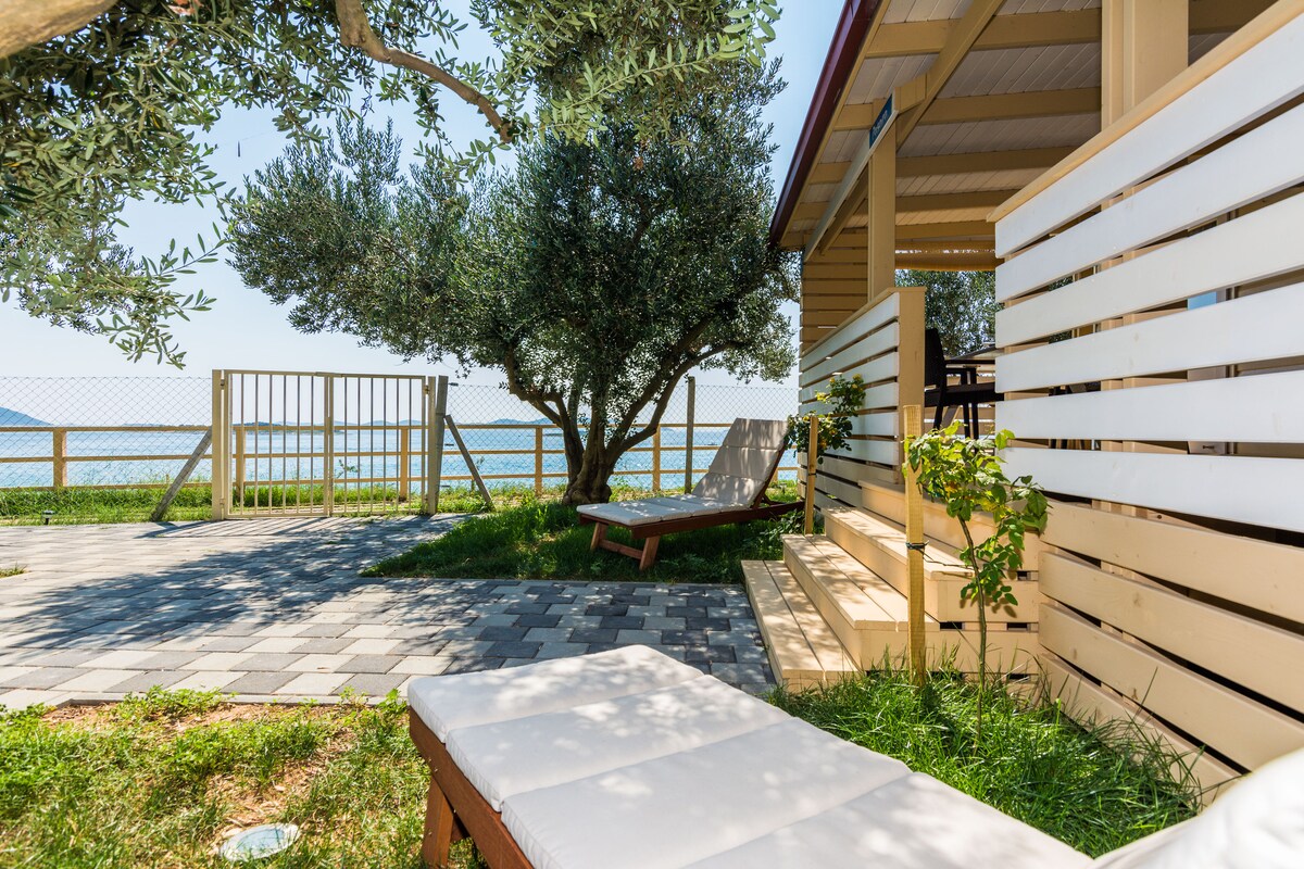 IMPORTANT: selecciona el període - els assistents al festival (thegardencroatia .com/esdeveniments) o famílies. 1 nit GRATUÏTA per a estades de més de 14 dies Modern (2023) i bungalou elegant, amb tots els serveis i aparcament. Vista directa al mar des de l'espaiosa terrassa amagada enmig d'oliveres i roures. Platja apartada, en una badia a la vora de les illes Kornati. Zona tranquil·la i tranquil·la, perfecta per a grups que vulguin relaxar-se i deixar-se relaxar. Atraccions properes en cotxe. Perfecte per a grups de 4 persones, amb 2 dormitoris i banys.