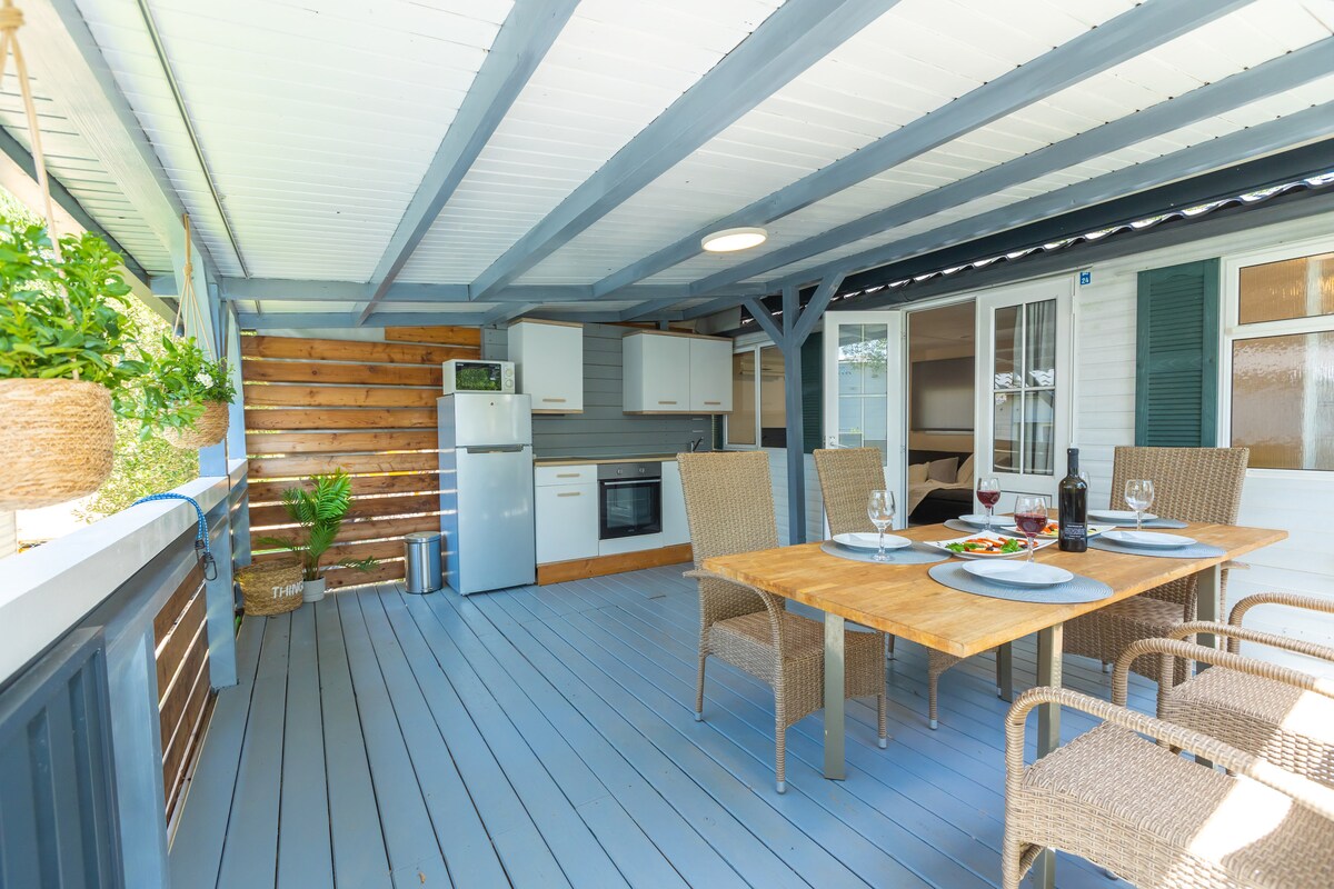 Et donem la benvinguda a la nostra acollidora i acuradament decorada casa mòbil, situada a només 10 metres del mar. És ideal per als hostes que volen unes vacances d'estiu de veritat, a prop de la platja i en un ambient relaxat, lluny de les multituds de la ciutat. La casa és funcional, neta i còmoda i ofereix tot el que necessites per a una estada sense preocupacions, tant si vens per un descans breu com per unes vacances més llargues. Un avantatge especial és la terrassa on pots gaudir del cafè del matí, menjar a l'aire lliure o relaxar-te al vespre amb una vista espectacular al mar.