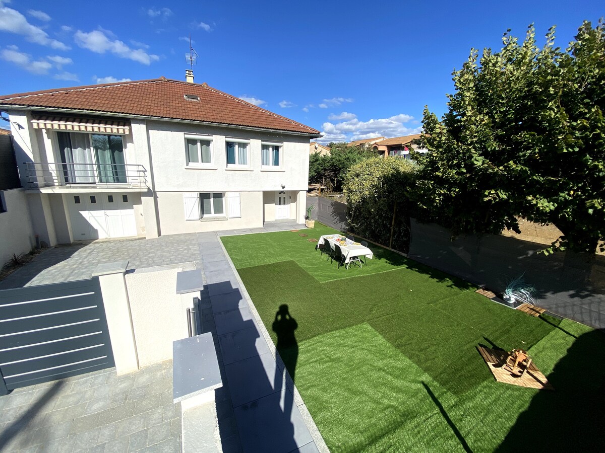 → Charme et convivialité pour séjour inoubliable :-) → Confort moderne (Clim, Wifi Très Haut Débit, Lave vaisselle, Lave linge, Sèche linge, etc.) → 3 chambres avec lits doubles (160cm x 200cm) → Cuisine américaine ouverte 100% équipée → 2 canapés et grande TV → Terrasse ombragée + barbecue gaz → 5 min gare SNCF / Vieille ville Montélimar → Parking gratuit dans le jardin ou dans la rue → Idéal familles, couples et professionnels CALENDRIER À JOUR = RÉSERVATION INSTANTANÉE MÊME EN LAST MINUTE !