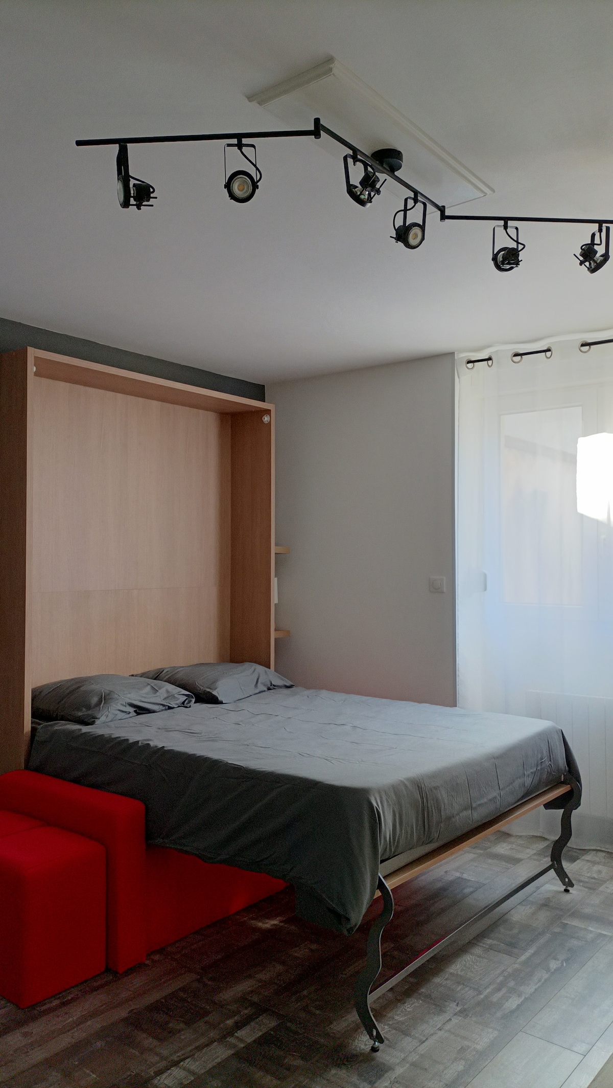 Al centre de la ciutat, pots apreciar aquest allotjament amb una terrassa d'11 m2. Cuina equipada amb rentaplats, rentadora, microones, cafetera Dolce Gusto. Dormitori amb llit de 160 cm separat de la sala d'estar amb una partició, el segon llit de 140 cm és a la sala d'estar. Sala de dutxa, emmagatzematge. Televisor connectat. Wifi de fibra d'alta velocitat. Ubicació de cotxes de carrer molt fàcil i gratuïta. Tot el recorregut per la ciutat és a peu. leclerc i aparcament gratuït a 50 metres