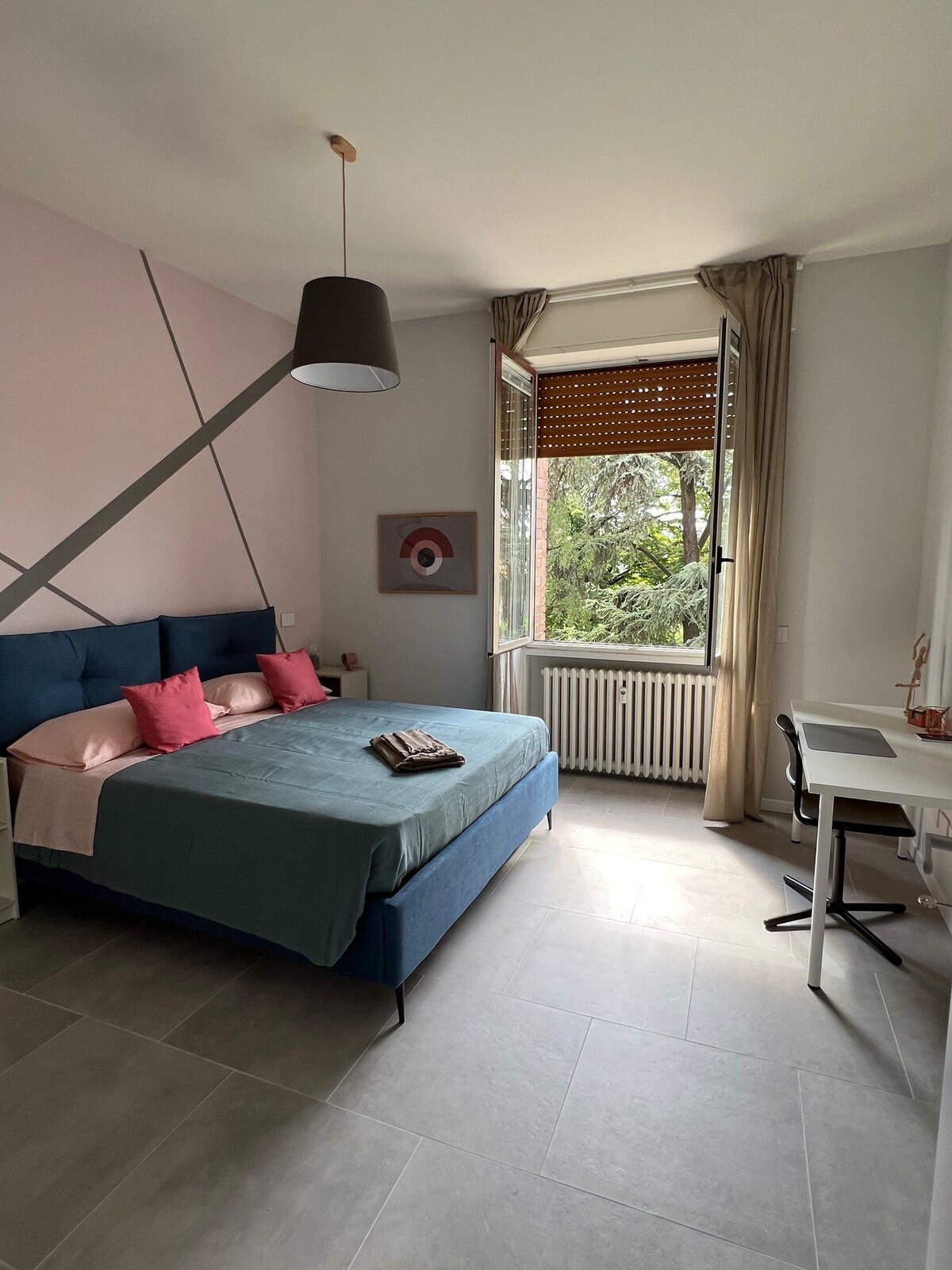 Apartament de dues habitacions en una posició única entre les cases característiques de LungoParma, amb balcó amb vista al llit del riu. L'apartament es troba a la 3a planta sense ascensor i consta d'una àmplia i lluminosa sala d'estar amb llit doble (160x200) i balcó, cuina independent i bany amb dutxa. Aire condicionat, rentadora, WiFi súper ràpida i TV. L'olor a pa ( estem damunt d'una de les pastisseries més antigues de Parma) i faisans al llit del riu us donaran un bon dia:-)