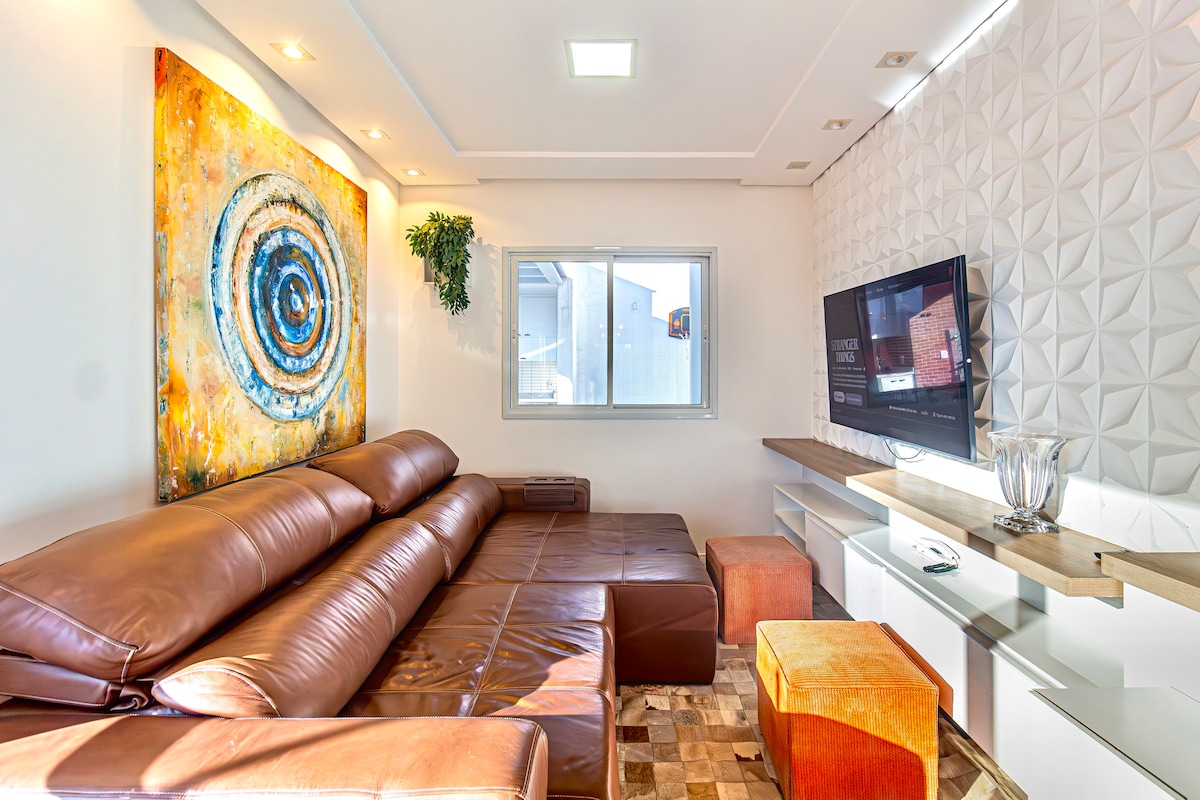 Gaudeix d'una experiència en aquest còmode i luxós pis al Gran Florianópolis! Al millor barri de Palhoça, el barri de Pedra Branca, en el qual estàs molt a prop de centres comercials, diversos parcs per fer passejades, pícnics, restaurants i a mitja hora de les platges de la regió com Guarda do Embau. Apartament amb ascensor, un gran parc per a nens i conserge les 24 hores amb una gran seguretat. El pis està ben moblat per a tu i la teva família.