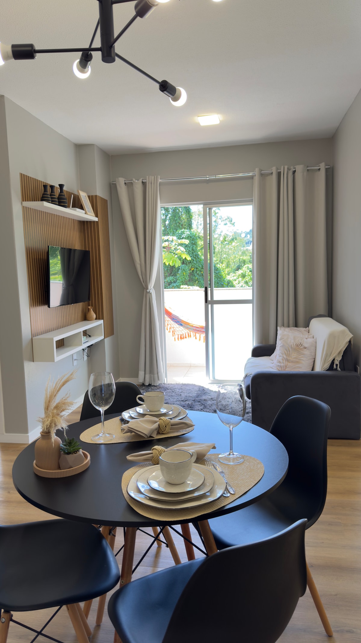 Apartamento confortável, clean e aconchegante, ideal para descanso ou viagens a trabalho. Sala integrada com jantar, cozinha equipada e sacada com churrasqueira. Quarto confortável com roupa de cama de qualidade e banheiro. Possui ar-condicionado em 1 dos quartos, Wi-Fi rápido e vaga de garagem coberta. Localização estratégica em São José, com fácil acesso a Florianópolis. 5 min de mercados e farmácias 5 min BR 101 5 min Continente Shopping 15 min do Hard Rock e Florianópolis
