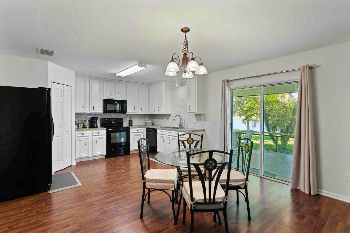 Escapa't al nostre acollidor refugi! Et relaxaràs amb estil amb fins a 6 llits al nostre barri segur, a prop de Publix i restaurants. Exploraràs platges, parcs i atraccions properes o fer una excursió d'un dia a St. Augustine i Orlando. Gaudeix de les vistes serenes del llac i de la pesca al pati del darrere. T'encantaran els nostres serveis de primera categoria, com ara una piscina recreativa amb tobogan, piscina de nit, bàsquet, gimnàs i parc infantil. Crearàs records inoblidables: reserva ara! Estarem encantats d'allotjar-te.