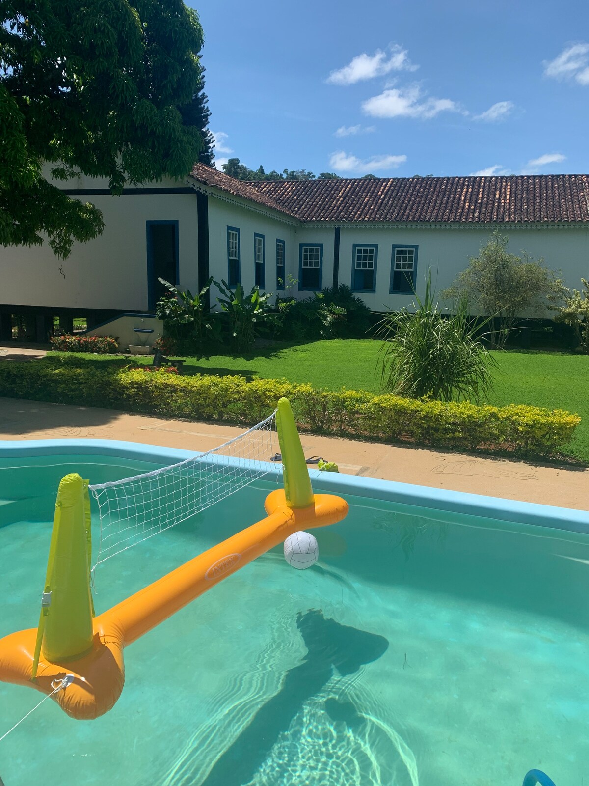 Tu i la teva família us allotjarem en una masia única, dins d'un apartament residencial rural, a només 10 minuts del centre de la ciutat. Et convido a viure la vida en una bonica casa modernista, amb una vista espectacular del llac i la posta de sol, creada en formigó reforçat, amb zona gourmet, piscina, Redário, gronxadors, pista de sorra i una pista de tennis de gespa natural. La teva estada promet moments inoblidables i descobriments fascinants!