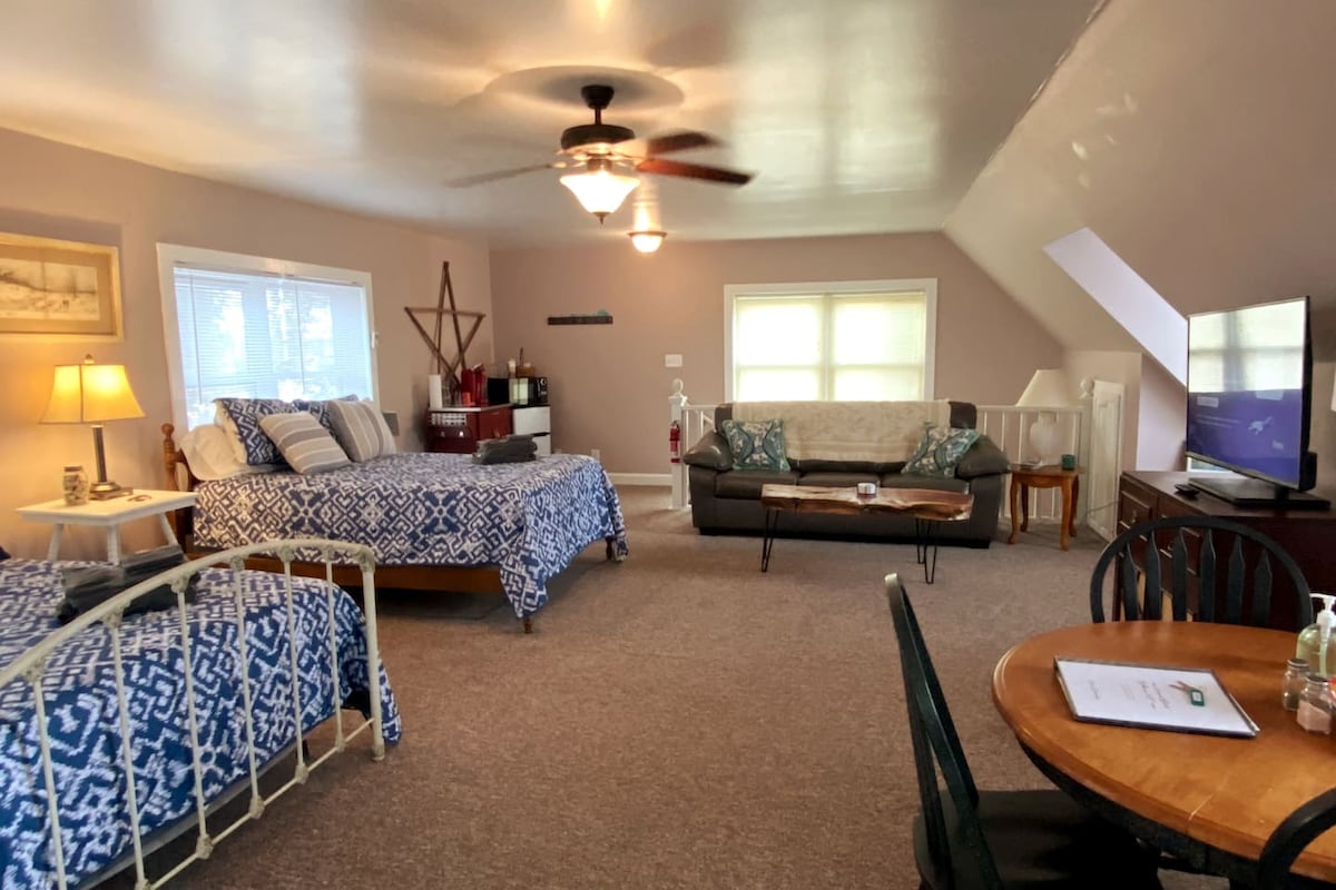 Retir al cor de Belhaven! Pis privat amb 2 llits dobles, bany complet, wifi, TV, nevera i cafetera Keurig. A pocs passos de River Forest Manor & Marina, parc a la vora de l'aigua a la cantonada. A poca distància de botigues, restaurants i embarcacions. Aparcament per a vaixells disponible! Perfecte per a la gent que passa per agafar el ferri a Ocracoke, viatges de pesca, observació de la vida silvestre o escapades romàntiques. Aparca un cop i explora-ho tot a peu en aquesta encantadora ciutat costanera de Carolina del Nord!