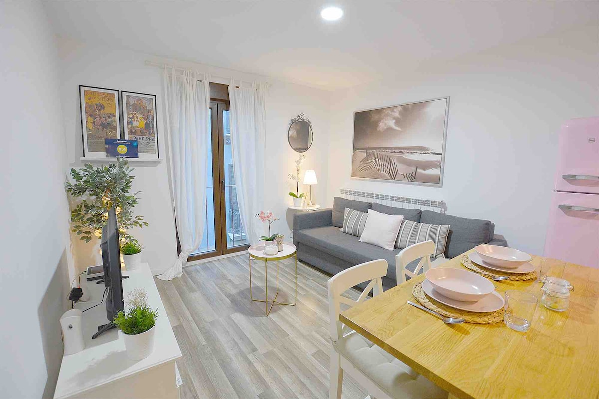 Gaudeix de la teva estada tranquil·la al casc antic de la ciutat. Aquest preciós pis està situat al centre de la ciutat, en un carrer tranquil, a només 3 minuts a peu de la Plaça del Castillo. En ell trobaràs tot el que necessites per descansar. La seva acollidora sala d'estar et donarà la benvinguda perquè puguis compartir les teves anècdotes del dia mentre tastes la gastronomia típica de la ciutat.
