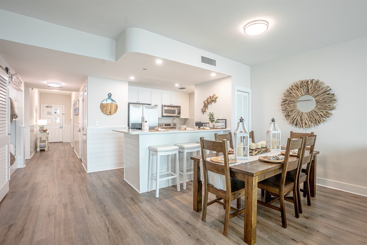 🌴 Les vacances a la platja t'esperen! Per fer una reserva, cal tenir més de 25 anys (norma de l'associació de propietaris) ✨ A peu de platja ✨ -2x cadires de platja, carro de platja, paraigua inclosa - 2 balancins de balcó -1 llit «king size», 1 sofà llit «queen size» - Wifi gratuït (d'alta velocitat) -3 piscines exteriors -2 pistes de pickleball - Estació de cafè - Cuina completa - 2 televisions intel·ligents (DirecTV/cable/streaming) -2 zones de barbacoa a l'aire lliure - Gimnàs - Tasses de record de Pineapple Willy's - descomptes en daiquiris inclosos! 🍹 Aquest refugi tranquil ofereix l’escapada a la platja definitiva!