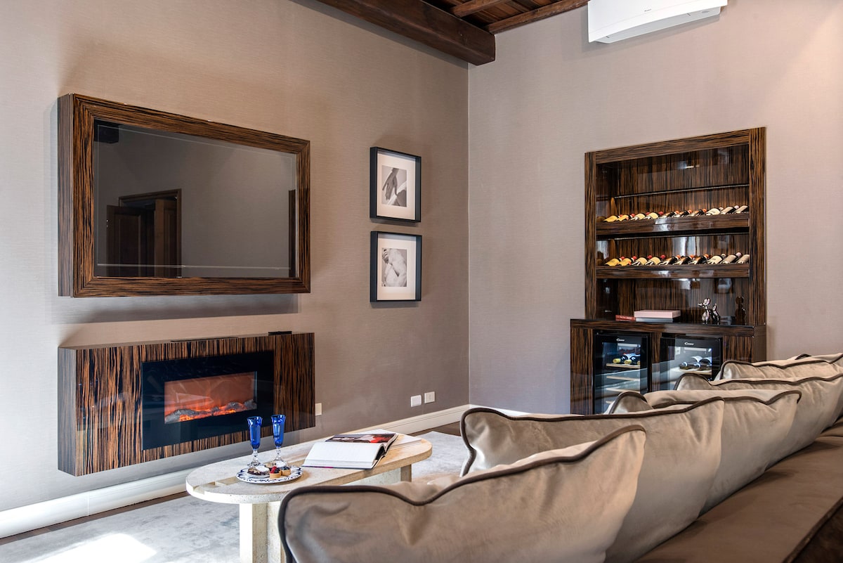 Pis nou de disseny amb un toc d'hotel de luxe a la Passejada Espanyola. Aquesta unitat de 5 dormitoris i 3 banys amb cuina per menjar i llar de foc es troba a la tercera planta d'un edifici històric amb ascensor. Els que els encanta estar a la zona més exclusiva de Roma, trobaran aquest pis un refugi perfecte situat en un carrer comercial pintoresc, envoltat de cafeteries i botigues de luxe. Els amants del vi apreciaran la nostra selecció personal de vins gràcies a la nevera de vins exclusiva de la casa.