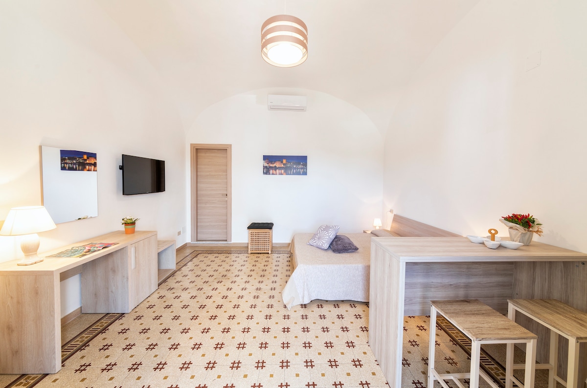 La nostra habitació amb cuina, acollidora i recentment reformada, es troba en una posició estratègica a pocs minuts en cotxe dels principals llocs d'interès (Parc termal "Poseidon", Centre di Forio, Borgo di Sant'Angelo, badia de Sorgeto). A pocs passos trobaràs la parada d'autobús i tots els serveis (bars, restaurants, pizzeries, supermercats, farmàcia, caixer automàtic, compres), donada la proximitat al centre del poble.