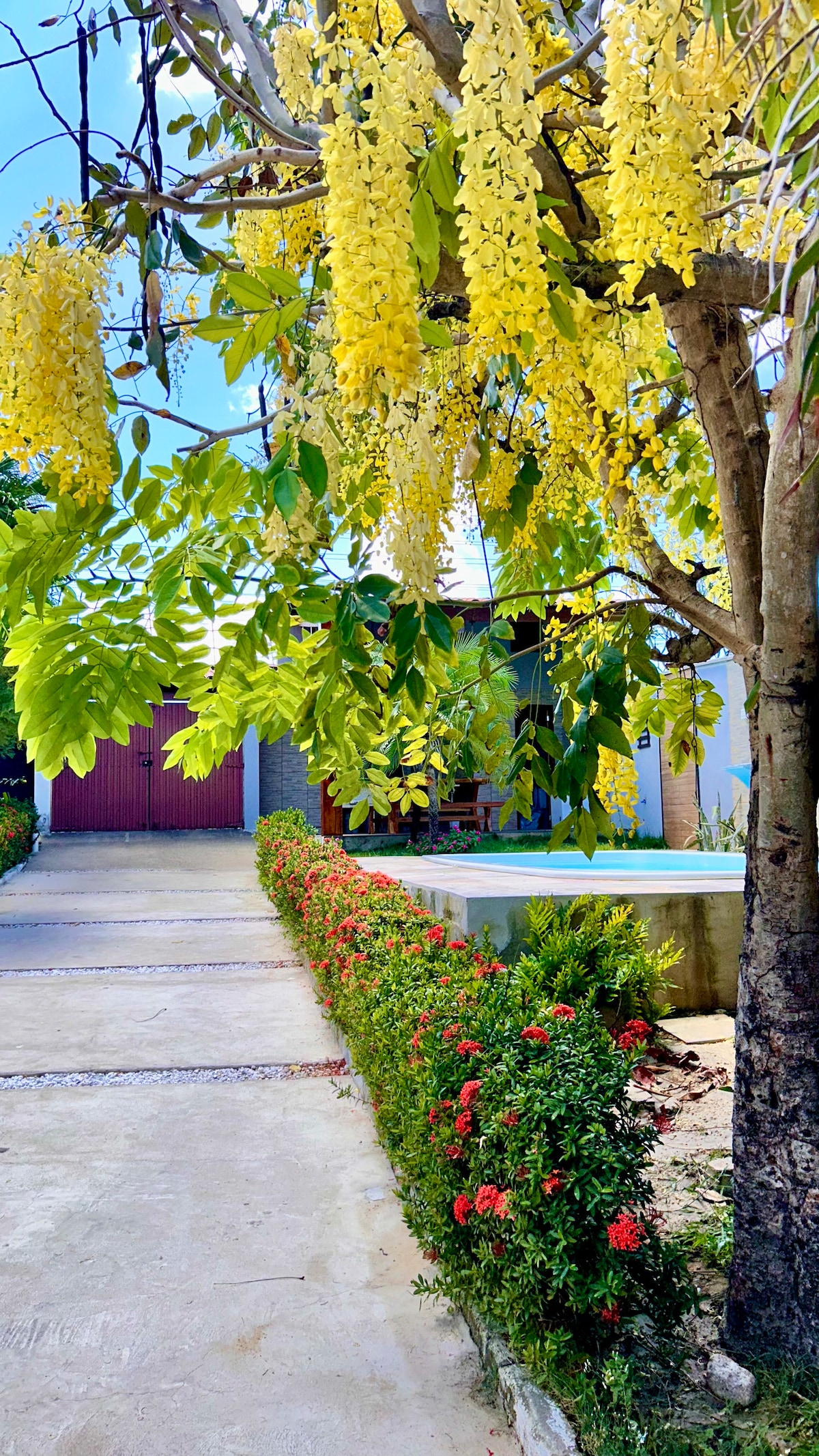 Estem a 9 km (5,6 milles) del centre de Paracuru i de la platja, en un espai tranquil dins del complex residencial, en una àmplia zona verda. Hi ha dues suites grans i espaioses amb banys grans i ben decorats, en una casa amb una sala d'estar còmoda i una cuina americana amb tots els electrodomèstics i estris necessaris per a una estada agradable, envoltada de balcons amb hamacs i cadires. Acceptem animals de companyia per una tarifa de 100 $ El complex té: barbacoa, piscina, pista de tennis i futbol, parc infantil.