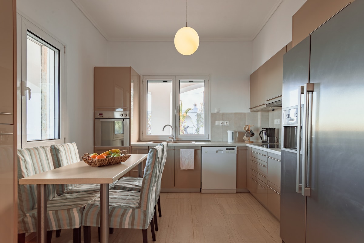 Benvinguts al "Paradís" de l'Àngel! La nostra casa ofereix tres dormitoris còmodes, dos banys, ideal per a famílies nombroses o amics que busquen un lloc per relaxar-se. Gaudeixi de la vista il·limitada del mar blau des del nostre gran balcó i deixi que els seus fills juguin al nostre jardí. Ideal per treballar en un ambient tranquil. Estem a només 20 minuts de l'aeroport Eleftherios Venizelos. A prop de la platja i de tavernes de peix.