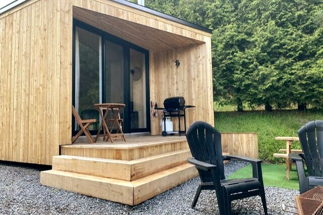 The Tiny house is our ideal little chalet for a couple or a small family. The cottage has a wood burning fireplace outside. The chalet is located on our 28 hectare private campground. Direct acces to snowmobile trail#351. We are located in the heart of Mauricie for outdoor activities it is the ideal place! Do not hesitate to ask us for information.