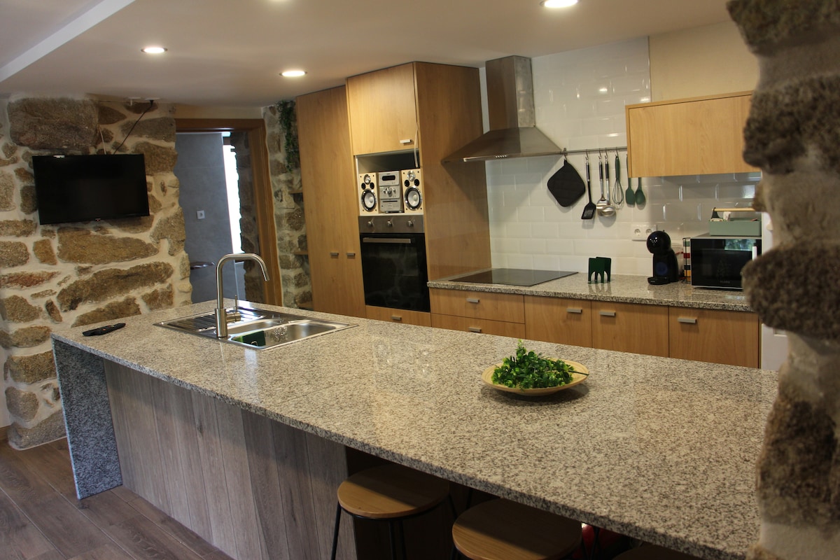 Oblida't del cotxe, aquí tot està a la mà. Restaurants, pastisseries i cafeteries de la vil·la, tot està al costat. La mítica platja fluvial de Tabuão, on se celebra el festival, es troba a 800 metres. El paisatge protegit de Corno de Bico a 5 km. Paredes de Coura es troba al centre de l'Alt-Minho, des d'aquí pots visitar els pobles més bonics de Minhotas. L'apartament està equipat amb tots els electrodomèstics.
