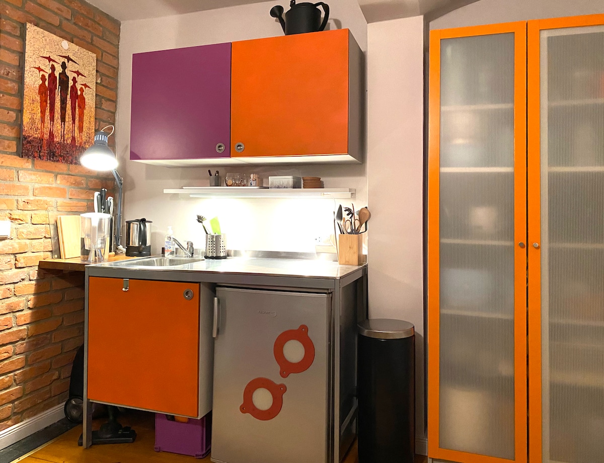 This spacious, loft-style apartment is centrally located between the popular Schanze and Altona neighborhoods, right in the heart of the action yet quietly nestled in a green courtyard. The bedroom offers a relaxing retreat, while the open-concept living, work, and dining area—complete with its own tea and coffee station—invites you to linger. The spacious terrace with a seating area is a wonderful place to relax. The fully equipped kitchen is perfect for both cooking and cozy get-togethers.