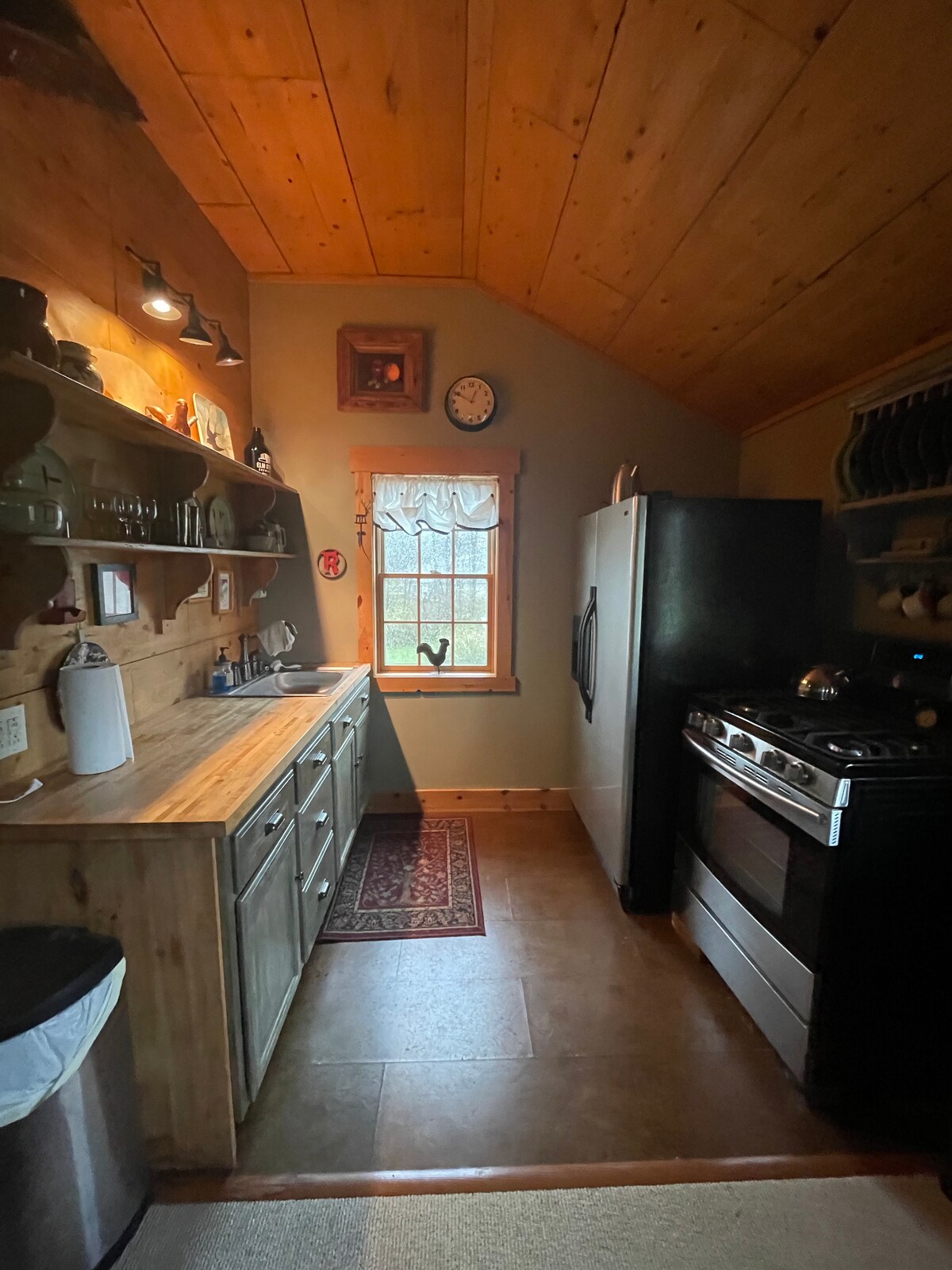 Creuràs que ets al camp quan arribis a la nostra tranquil·la propietat de 10 hectàrees a Muncie. Situada a prop de la nostra casa històrica, construïda el 1848, trobaràs una caseta de carruatge amb un pis a la planta superior amb tot el que necessites per gaudir d'una estada relaxant i còmoda. Es tracta d'una cabana pintoresca i rústica com un espai amb zona privada a l'aire lliure. Estàs a només cinc o 10 minuts de BSU i IU Ball Hospital, el centre de la ciutat, Elm Street Brewing, el Museu Infantil, senders per caminar i la majoria de restaurants.