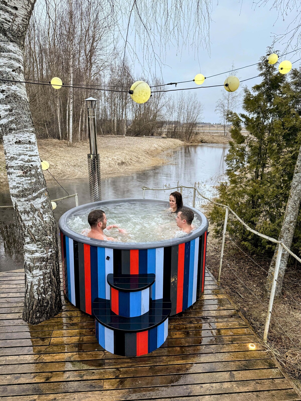 If you want to experience something unique and immerse yourself in Estonian sauna culture, this is just the place for you! This cozy house is built on an authentic fishing boat located on the bank of a serene pond. It is a small spa complex where you can enjoy sauna treatments, relax in the hot tub, and refresh yourself in the cold pond water after a sauna session. The hot tub is available for an additional fee of €49 (from 01.05 to 31.08 the price is €79). This is an experience to remember!
