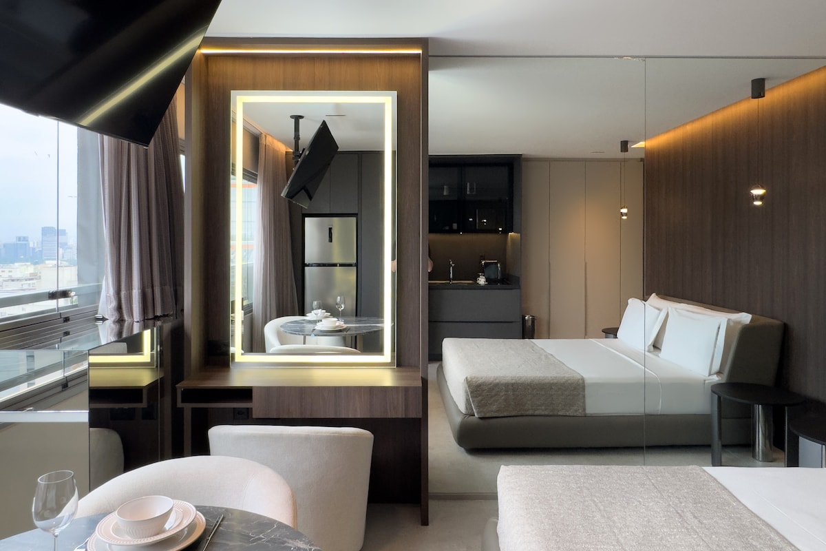 Estúdio Novo com Vista Panorâmica — 24º Andar com Piscina Infinita e Estilo! Desfrute de São Paulo com conforto e estilo em nosso estúdio montado com carinho para recebê-lo. Localizado no 24º andar com *vista envidraçada de 180° para a Marginal Pinheiros*. Um refúgio moderno, ideal para quem busca praticidade, comodidade e uma experiência diferenciada na cidade.