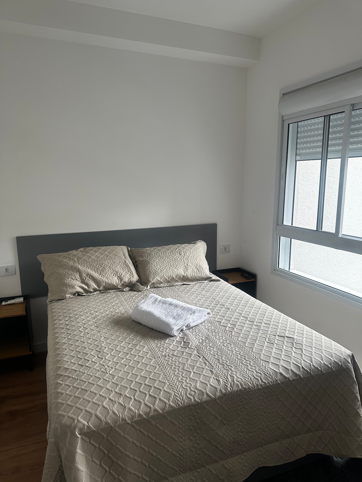 Pis complet amb internet, aire condicionat i ventilador de sostre, microones, nevera, cuina d'inducció, situat a 950 m de l'estació de metro Campo Belo do, en un apartament amb piscina exterior al terrat, piscina climatitzada, pista de tennis, gimnàs molt equipat, botiga, sauna i spa, espai de treball col·laboratiu, bugaderia, servei de neteja i conserge les 24 hores.
