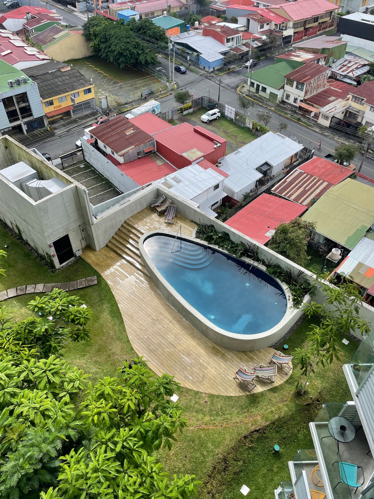 Pis elegant al barri més agradable de San José. El loft es troba en una nova torre de luxe amb més de 10 serveis (espais de treball col·laboratiu, piscina semiolímpica, piscina terapèutica, jacuzzi en diferents plantes, jardí infantil, dos gimnasos i diversos altres espais). Hi ha supermercats, bancs, restaurants, el parc metropolità de Sabana, l'Estadi Nacional. Ideal per al turisme mèdic, els viatgers de negocis o qualsevol persona que vulgui visitar San José.