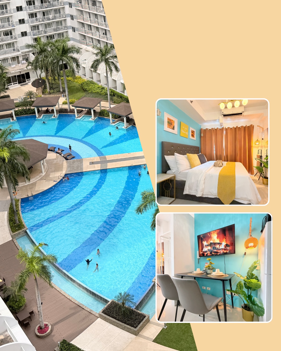 Acollidor estudi de cantonada a només 5 minuts de la terminal 3 de NAIA i de Runway Manila. Gaudeix d'un espai lluminós amb vistes a l'aeroport, un llit còmode, una televisió intel·ligent amb Netflix gratuït i wifi ràpida. Els hostes també tenen accés gratuït a la piscina, al gimnàs i al parc infantil, cosa que el fa perfecte per a escales, escapades ràpides o estades a la ciutat.