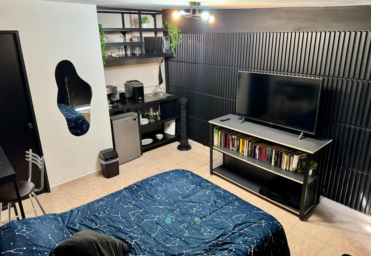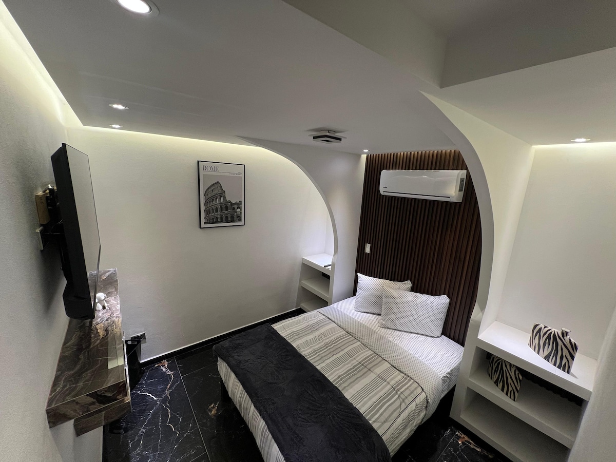 Loft independent i acollidor, excel·lent ubicació. Llit king, TV per cable i estufa d'inducció magnètica. A poques maneres de l'estadi Victoria i Deportivo IV Centenario. A prop del complex ferroviari on es troben el Museu d'Art Contemporani, l'Hospital Hidalgo, les oficines del Grupo Modelo, Telethon i el complex ferroviari Tres Centurias. Sud/nord de la ciutat en 15 minuts i centre 7 min. A 10 minuts del Poliforum Charro. Gaudeix del que Ags té per a tu; sentir-te com a casa durant la teva visita.