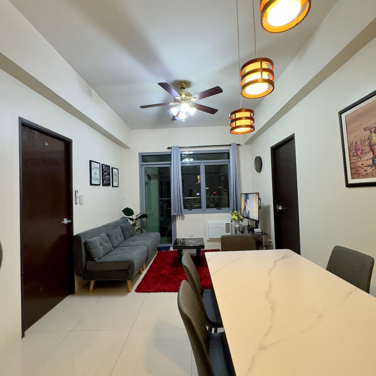 Lovely one bedroom unit in Light Residences! Queen-sized bed and a pull out bed perfect for up to 4 pax! Get your much needed break in this unit with our Smart TV with Netflix, fast WiFi w/ 50 mbps subscription, cold aircon, washer, instant-on hot water heating too! Note: There is pay parking at Light but we suggest in nearby Greenfields or along Pioneer for the best rates.