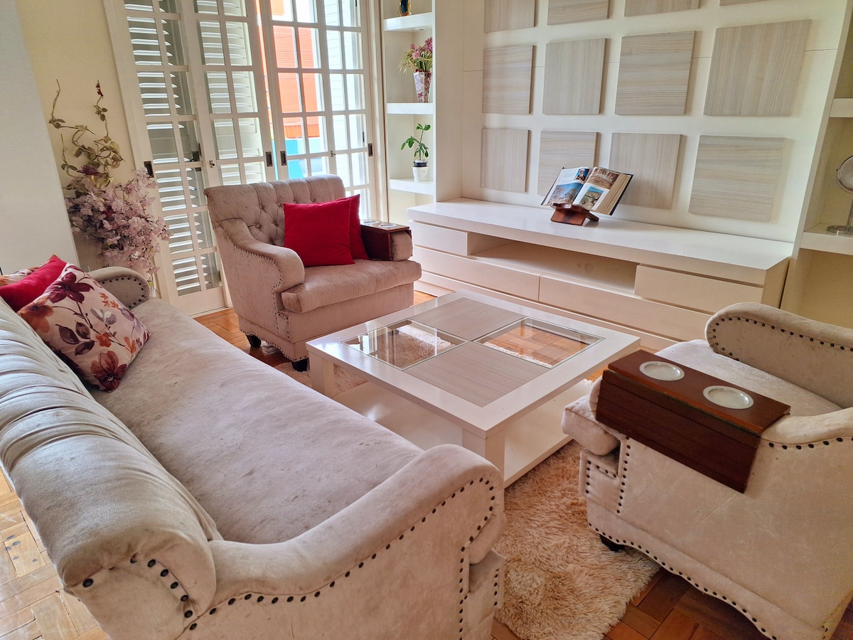 Recanto Don Ciro és un xalet americà preciós amb equipament i serveis per a allotjaments i esdeveniments! Disposa d'una estructura per a un màxim de 7 hostes i, si es demana, per a un màxim de 35 hostes per a esdeveniments. Ubicació segura, en diagonal a la seu, disposa d'un ampli pati arbrat, piscina, porxo amb barbacoa, minicamp de futbol, hamaca i pati pavimentat! Hi ha un supermercat, farmàcies i botigues a 500 metres. El centre està a 10 minuts en cotxe, prou a prop per a la comoditat, però lluny per garantir la pau i la seguretat.