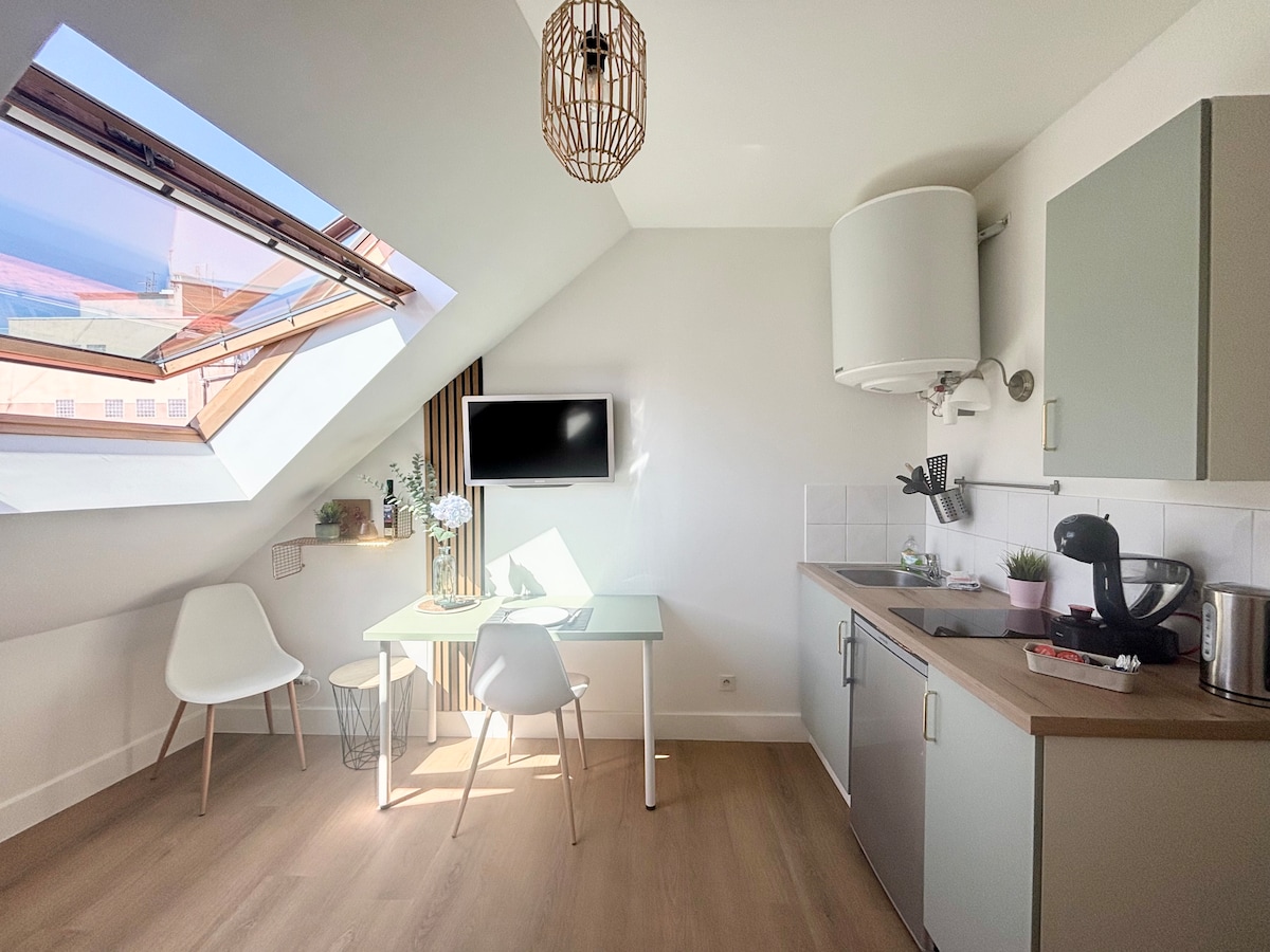 Petit Coin de Bonheur brand-new air-conditioned studio with terrace and private parking, 5 minutes from downtown. Bright, fully-equipped studio. Warm, brand-new accommodation offering all the comforts you need for a pleasant stay. Composed of : A fully equipped kitchen. A large living room with TV, internet access and wifi. A low mezzanine with a 160cm bed. Bathroom with 120cm shower and washing machine.