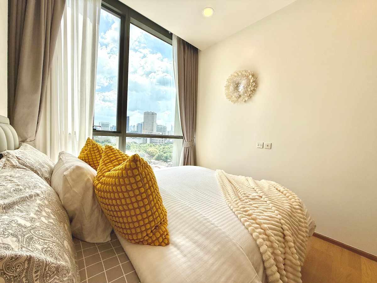 «L'allotjament és tan bo com les fotos. Residencials i restaurants de molt alta gamma. Excel·lent elecció per a la teva estada a Bangkok." ☆ Superhost d'Airbnb des del 2015 Recollida ❤ gratuïta a l'aeroport! Pis de❤ doble cantonada ❤ Vista impressionant ❤ 4 balcons ❤ Televisor intel·ligent Piscina i gimnàs ❤ gratuïts ❤ 3 dormitoris - 3 banys ❤ Verd, tranquil i en bon estat ☆ SPA, caixer automàtic, restaurant a l'edifici ☆ BTS Chitlom & Lumpini Park (7 minuts a peu) ☆ A prop de Central World i Siam ☆ A prop del mercat de Pratunam i de la terminal 21