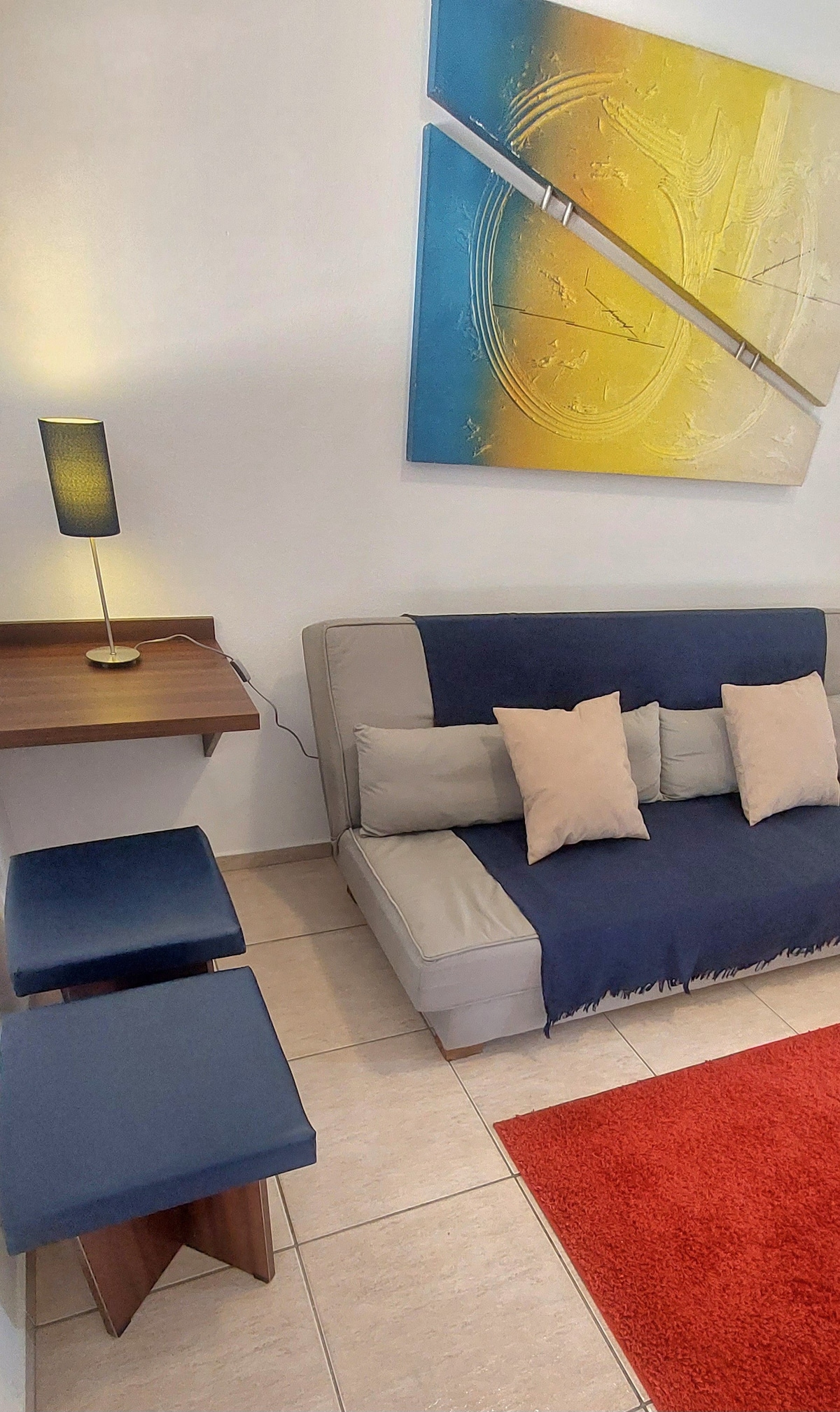Pis Lindo a prop del Centre i de l'Aeroport. Allotjament per a un màxim de 4 persones, amb un llit doble, un llit individual i un llit auxiliar. Perfecte per descansar, en un lloc tranquil i segur. No tenim aparcament, però el lloc és en un carrer tranquil i sempre hi ha un lloc davant de l'edifici, que és just davant de l'aparador. Cuina d'un barri amb estris per preparar alguna cosa ràpidament. També tenim una planxa i un ventilador.