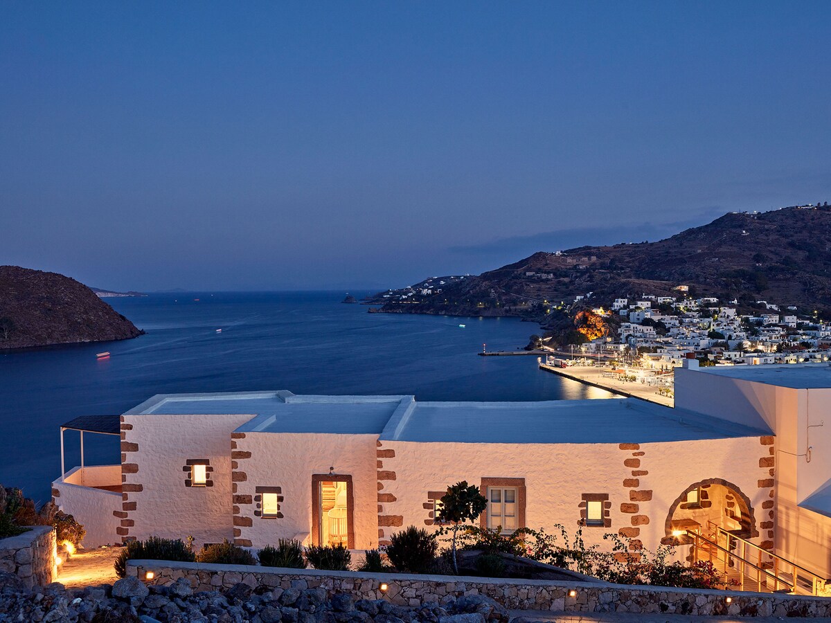 A la pintoresca illa de Patmos, aquesta vil·la de luxe independent té vistes a Chora i al seu castell únic, a pocs metres de distància, mentre que també ofereix unes vistes increïbles de la sortida del sol. Perfectament situada al cim del turó, aquesta vil·la bioclimàtica ofereix un clima fresc natural fins i tot en els dies més calorosos, només amb obrir una finestra. A totes les plantes d'aquest allotjament exclusiu es poden veure els materials únics que es va construir aquesta magnífica vil·la, gaudir de les vistes panoràmiques des dels seus porxos.