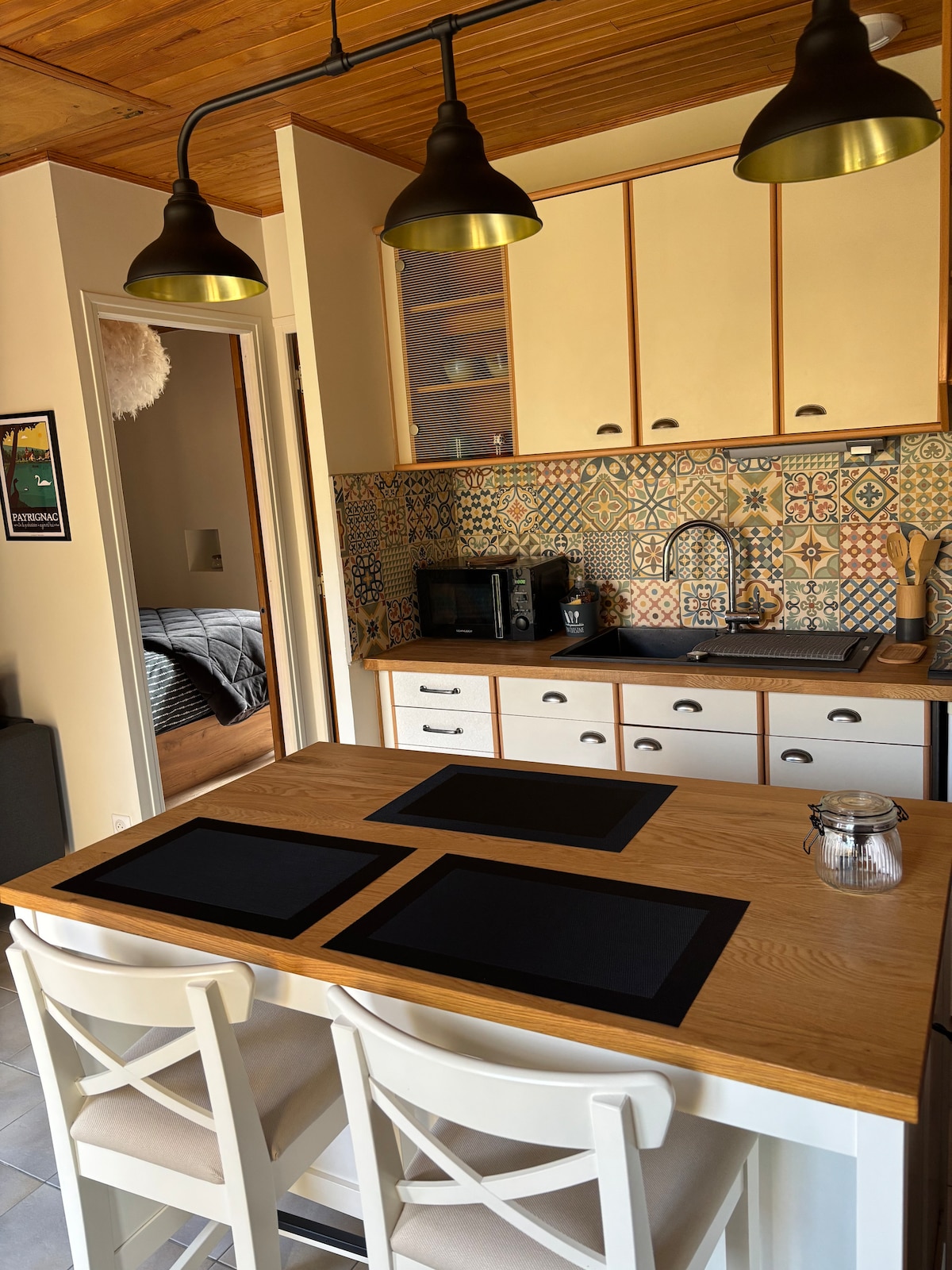 Logement entièrement refait à neuf. studio de 19 m2 comprenant un séjour cuisine une petite chambre et une salle de bain. Entièrement équipé vois n avez plus qu à poser les valises. Les draps et les serviettes sont fournis. L appartement se situe à Gourdon même à 10 minutes à pied du centre ville. Dans un quartier résidentiel calme. Un petit jardin qui sera aménagé au printemps se situe juste devant le studio.