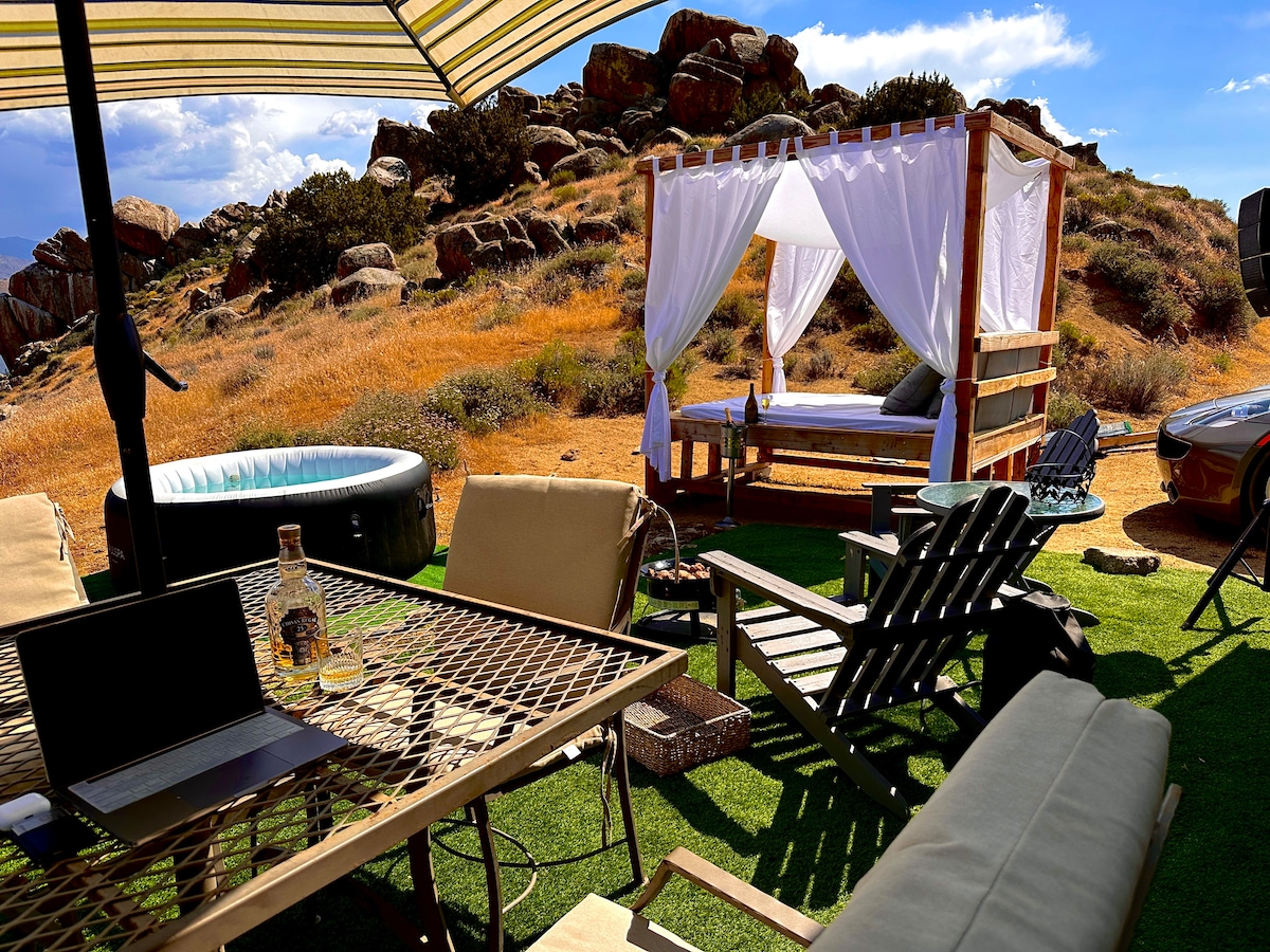 Tindràs tot l'allotjament per a tu i els teus! Desconnecta els nostres eco-pods fora de xarxa, a prop de Dearh Valley i lluny de les multituds.Què t'encantarà: Entorn privat de 480 hectàrees per observar les estrelles al desert Càpsules amb aire condicionat, wifi ràpid Foguera i barbacoa per a sopars a l'aire lliure Rutes amb vehicles tot terreny Aparcament gratuït, roba de llit i elements bàsics inclosos Alimentat de manera sostenible amb energia solar Desperta't amb el sol sobre el desert de Mojave, fes xurros a la nit i dorm sota un milió d'estrelles. Reserva la teva escapada avui mateix: les dates s'omplen ràpidament!
