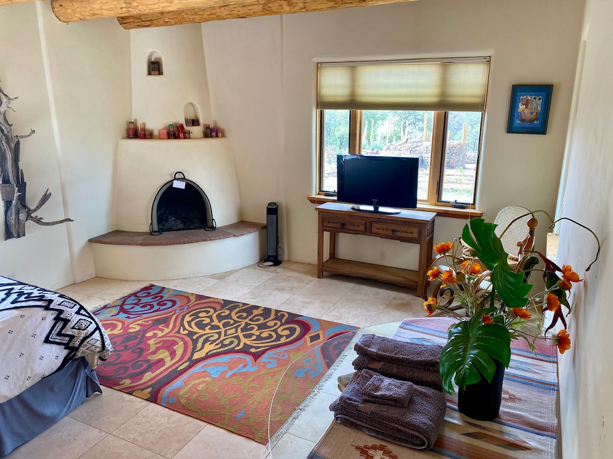 La teva retirada de tot això! Gaudeix del tranquil santuari de la nostra vall amagada al riu Pecos. A 45 minuts en cotxe de Santa Fe i a només 20 minuts de la històrica ciutat ferroviària de Las Vegas. Dedica temps a escriure, pintar, cantar, relaxar-te... passar temps al costat del riu, empassar-te a les fonts termals locals, visitar els nostres cavalls. Gaudiu del vostre propi pati privat i de la parrillada. Beu el cafè del matí escoltant el so de l'aigua corrent de l'àquia. Accés tancat. 25 dòlars més per nit.