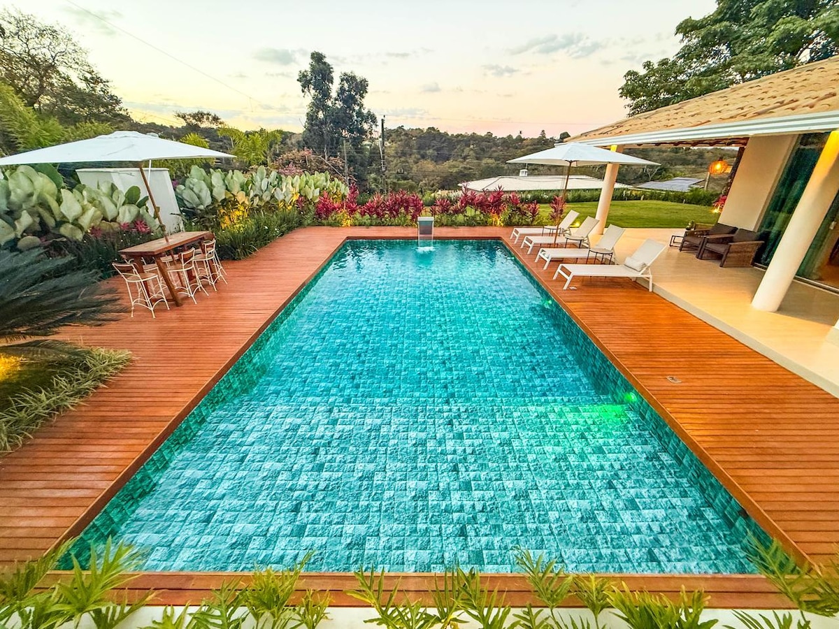 Casa Lagoa - Cada detalhe pensado com requinte para garantir total satisfação. Uma propriedade em meio à natureza, com a segurança de um condomínio fechado com portaria 24h. Viva momentos com amigos e família em amplo e completo espaço com detalhes elegantes. Dedicamos nossa casa a quem procura deferenciais, com apelo sensorial, cuja construção foi planejada buscando completo equilíbrio entre elementos rústicos e modernos.