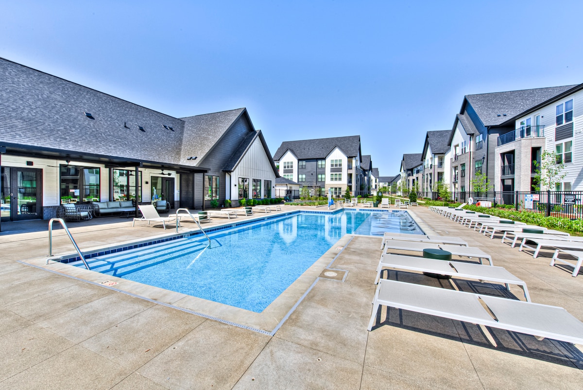 PIS NOU d'un dormitori de primer nivell amb llit king. A minuts de Downtown Fishers. El complex està convenientment situat al costat de la reserva natural, el camí per caminar i el camí Nickel Plate Trail. Gaudeix dels serveis increïbles: piscina, banyera d'hidromassatge, gimnàs, centre de negocis, sala de estar de la casa club i espai de graella a l'aire lliure. A 10 minuts del Ruoff Music Center. Nota: la PISCINA I LA BANYERA D'HIDROMASSATGE SÓN NOMÉS DURANT ELS MESOS D'ESTIU. (DES DEL MEMORIAL DAY FINS AL DIA DEL TREBALL)
