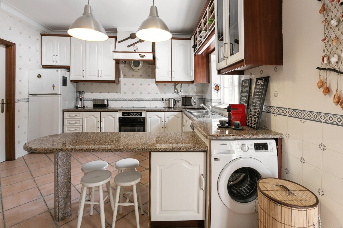 Vil·la familiar amb 3 dormitoris, 3 banys, 1 sala d'estar/ menjador, 1 cuina totalment equipada i pati amb barbacoa, adequada per a amics i/o família. En un lloc molt tranquil, excel·lent per descansar, fàcil aparcament, a 2 minuts a peu de la platja de Porto Areia Sul. Fàcil accés a restaurants, botigues, jardins, transport i port d'enviament a l'illa de Berlengas. El nostre objectiu principal és oferir als nostres hostes les millors condicions per gaudir d'una estada fantàstica. Estarem encantats de rebre't.