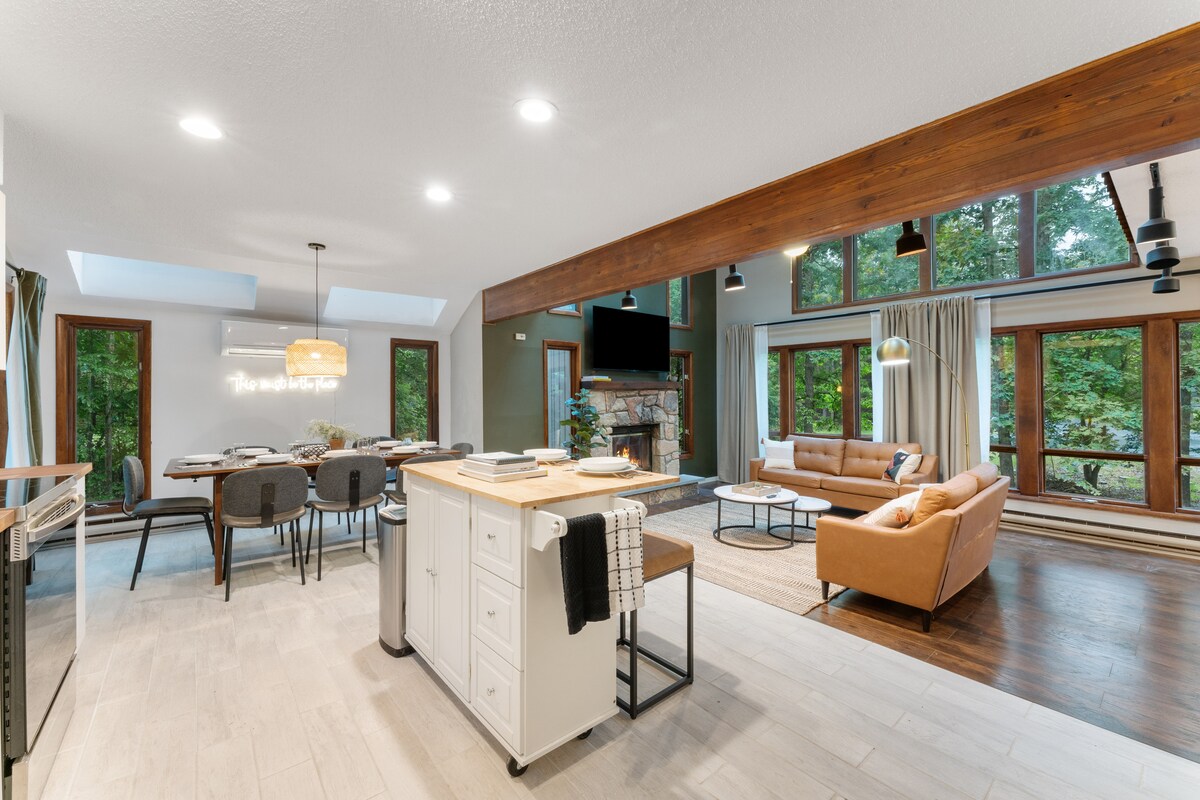 Un allotjament realment únic a les muntanyes Pocono, que alberga un terreny de muntanya ondulant, cascades impressionantment boniques, boscos pròstics i més de 170 milles de riu serpentejant. Aquesta estada està pensada perquè els hostes gaudeixin d'una nit inoblidable. Podran prendre un vi sota les estrelles en una banyera d'hidromassatge privada i gaudir de pel·lícules en una pantalla de 135 polzades amb el primer projector LED 4K per a videojocs del món. Gaudeix dels dormitoris temàtics i gaudeix d'una estada on el bosc et portarà mentre t'allotges amb la màxima comoditat i luxe.