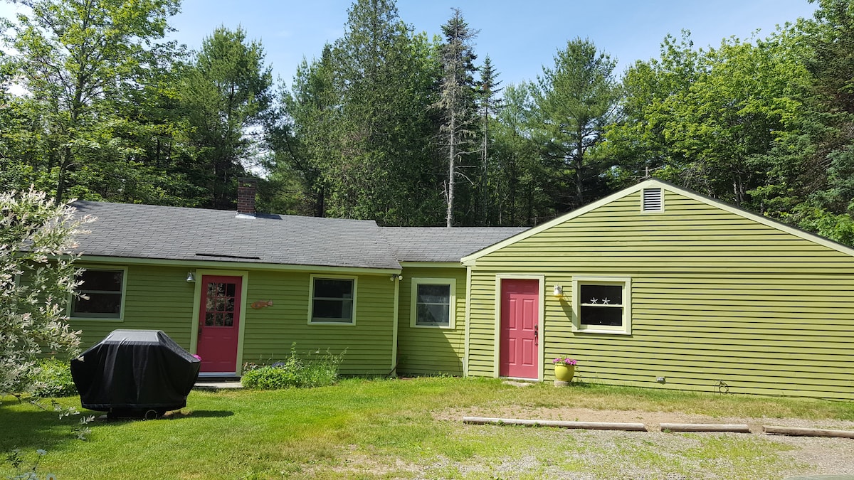 Bright, quiet, clean studio apartment easy 45 minute drive to Acadia National Park, 5 minute drive to scenic Blue Hill village. Hiking trails are less than a mile away and plenty of fresh and salt water access nearby. Outside table and chairs surrounded by trees, birds and gardens in a quiet, safe neighborhood at the end of a short dirt road. Enjoy total privacy or ask your hosts for local knowledge. All one room, with kitchenette, queen bed, futon couch, and fold out single bed.