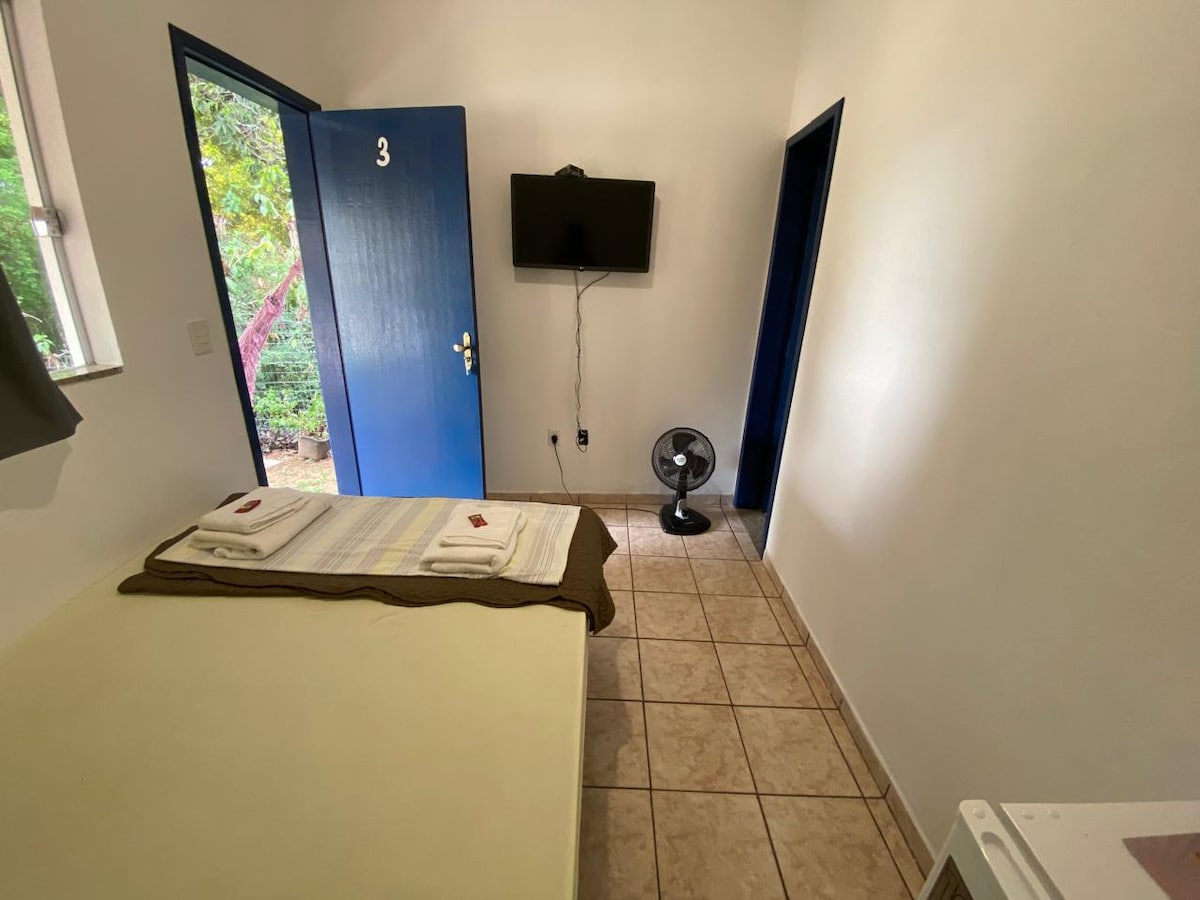 Casa a Cana Verde, MG (Cerradinho). Té 1 dormitori equipat amb 1 llit doble i 2 llits individuals. Zona exterior amb piscina, dutxa, barbacoa i bany. Un entorn boscós i acollidor, ideal per descansar. Garatge privat disponible. A només 15/20 minuts de Bar do Tião. Nota: lloguer de vacances exclusiu, no disponible per a estades de feina.