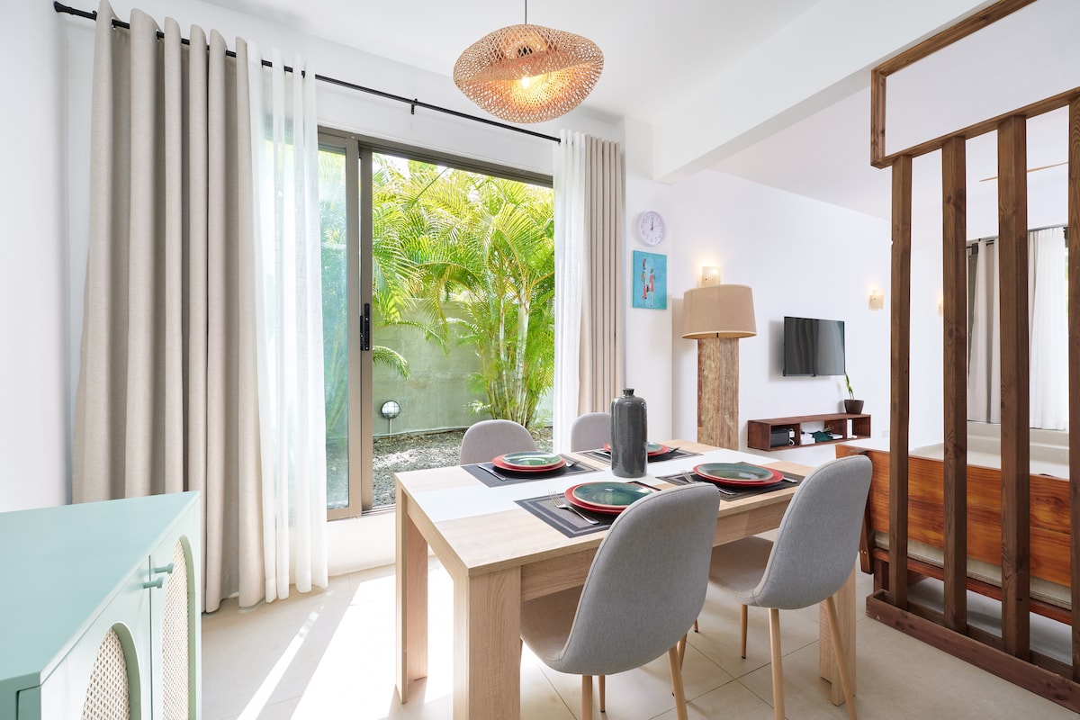 Pis de 150 m² - 3 dormitoris, estil bohemi chic, a 1 minut a peu del mar - Apartament modern i decorat amb gust - La platja de La Cuvette és a 1 minut a peu - Pereybère i el centre de Grand Baie (supermercats, restaurants, activitats) accessibles en 5 minuts - Piscina compartida, terrassa i barbacoa - Cuina totalment equipada. - Cafetera Nespresso - Wifi d'alta velocitat - Aire condicionat a totes les habitacions - Aparcament privat - Assistència les 24 hores
