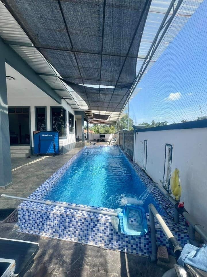 This place is located in Wakaf Beruas, Kuala Terengganu, just a short drive from popular tourist attractions, including Keropok Losong, Nasi Dagang Atas Tol Hiliran, Terengganu State Museum, Pantai Batu Buruk, Pasar Payang, and the city center. The 18x10ft pool (2ft & 3.5ft deep) can be seen and accessed directly from the living room, master bedroom, and kitchen. All rooms have air conditioning and the gated parking space is huge, can fit up to 8 cars!