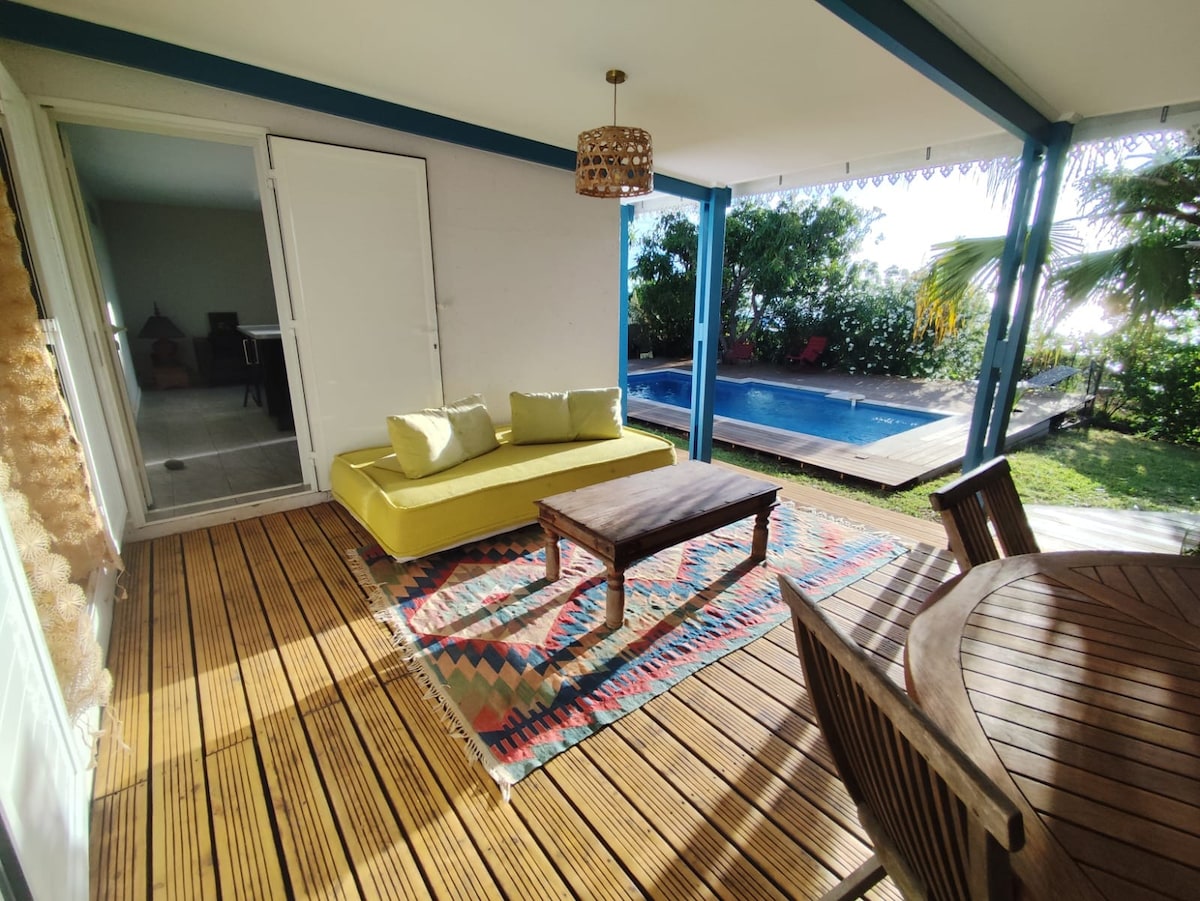 Preciosa vil·la de luxe amb vistes al mar de 180° i vistes a la muntanya. Està equipat per allotjar 6 persones còmodament. La seva ubicació tranquil·la i tranquil·la et dóna fàcil accés al centre de Petite-Ile, cap a la platja Grand-Anse, cap a la ciutat de Saint-Pierre i cap al sud salvatge. Una gran piscina de sal et permetrà relaxar-te quan vulguis que sigui durant el dia i la nit després de les teves excursions a l'illa.