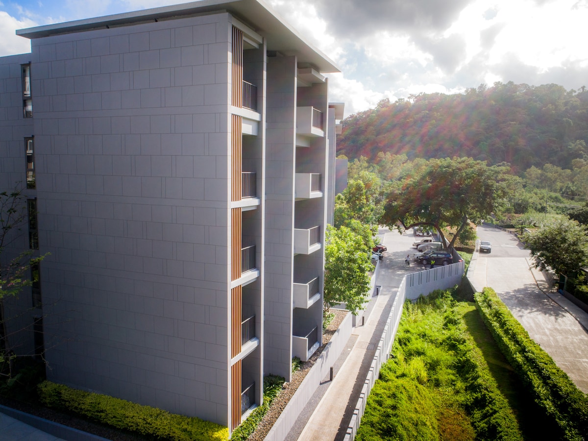 Accés independent. Somia vivint durant la teva estada de vacances a The Sunshine Khaoyai amb vista panoràmica des del meu balcó en una planta alta. Estàs envoltat de turons ondulants i arbres extensos amb un ambient tranquil. L'apartament està aïllat i en un costat tranquil i tranquil de l'edifici. Llit còmode, bona pressió d'aigua, internet d'alta velocitat. Pots gaudir de totes les instal·lacions, com ara piscina, zona de fitness, vestíbul obert, parc EscapeYard, bistrot Green Oak i jardí al terrat.