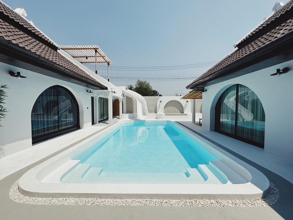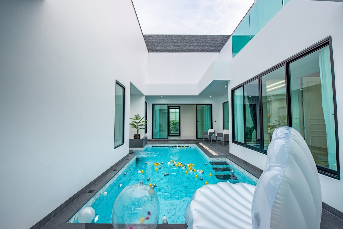 La nostra VIL·LA AMB PISCINA de 4 LLITS i 3 BANYS bellament dissenyada! Una vil·la té tot el que necessites per fer-te sentir com a casa, a 10 minuts de la platja. El supermercat està davant de l'entrada de la vil·la; un mercat fresc està a només uns minuts a peu. TINGUES EN COMPTE: * Accés independent * Neteja gratuïta i canvi de llençols durant l'estada * S'espera que els hostes paguen per l'ús d'electricitat amb el comptador a 8B/unitat (les primeres 30 unitats són gratuïtes) *Es requereix un dipòsit reembossable de 5000 Baht per danys.
