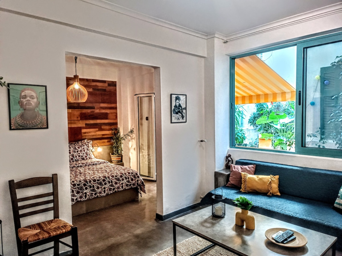 Un estudi únic i estèticament agradable de 50 m2, a poca distància a peu de l'Acròpolis i de tots els llocs arqueològics. Equipat amb jacuzzi interior, wifi ràpid, aire condicionat, NetflixTV, doble vidre, cuina totalment equipada i un bon balcó amb vista al jardí per fer que la teva estada sigui inoblidable! Situat en un barri segur i viu amb accés directe a tot el transport públic i envoltat de restaurants, cafeteries i botigues locals. El millor lloc per relaxar-se després d'un dia ple d'exploració de la preciosa Atenes!