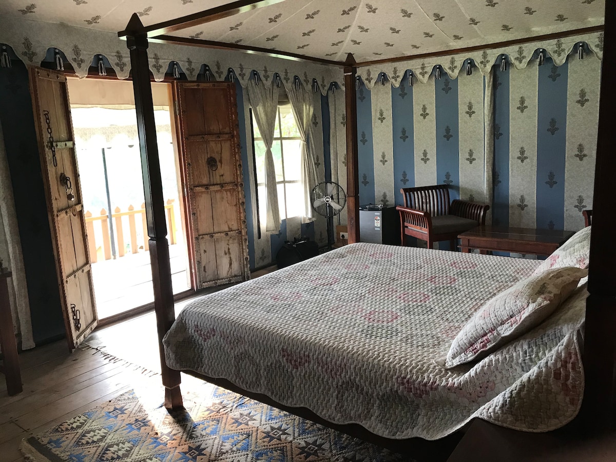 Experience a luxurious jungle stay in the heart of Ranthambore, where heritage elegance meets modern comfort. This spacious luxury tented cottage is thoughtfully designed with a royal touch, featuring a handcrafted four-poster wooden bed, premium linens, and warm ambient lighting that creates a cozy yet regal atmosphere.